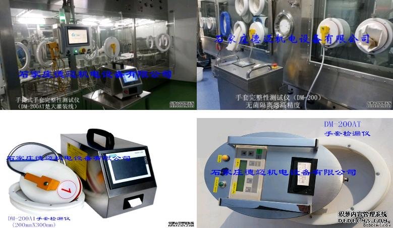 DM系列手套檢漏儀是專門檢測手套是否有泄漏的檢漏設備,主要應用于無菌傳遞艙、負壓手套箱、無菌正壓隔離器、無菌試驗隔離器、C-RABS等使用手套的離線在線檢測,不需使用外接氣源,它由高低壓充氣泵、電氣與氣動控制組件、傳感器、觸摸屏、手套框鏈接單元、外箱體等幾部分組成。